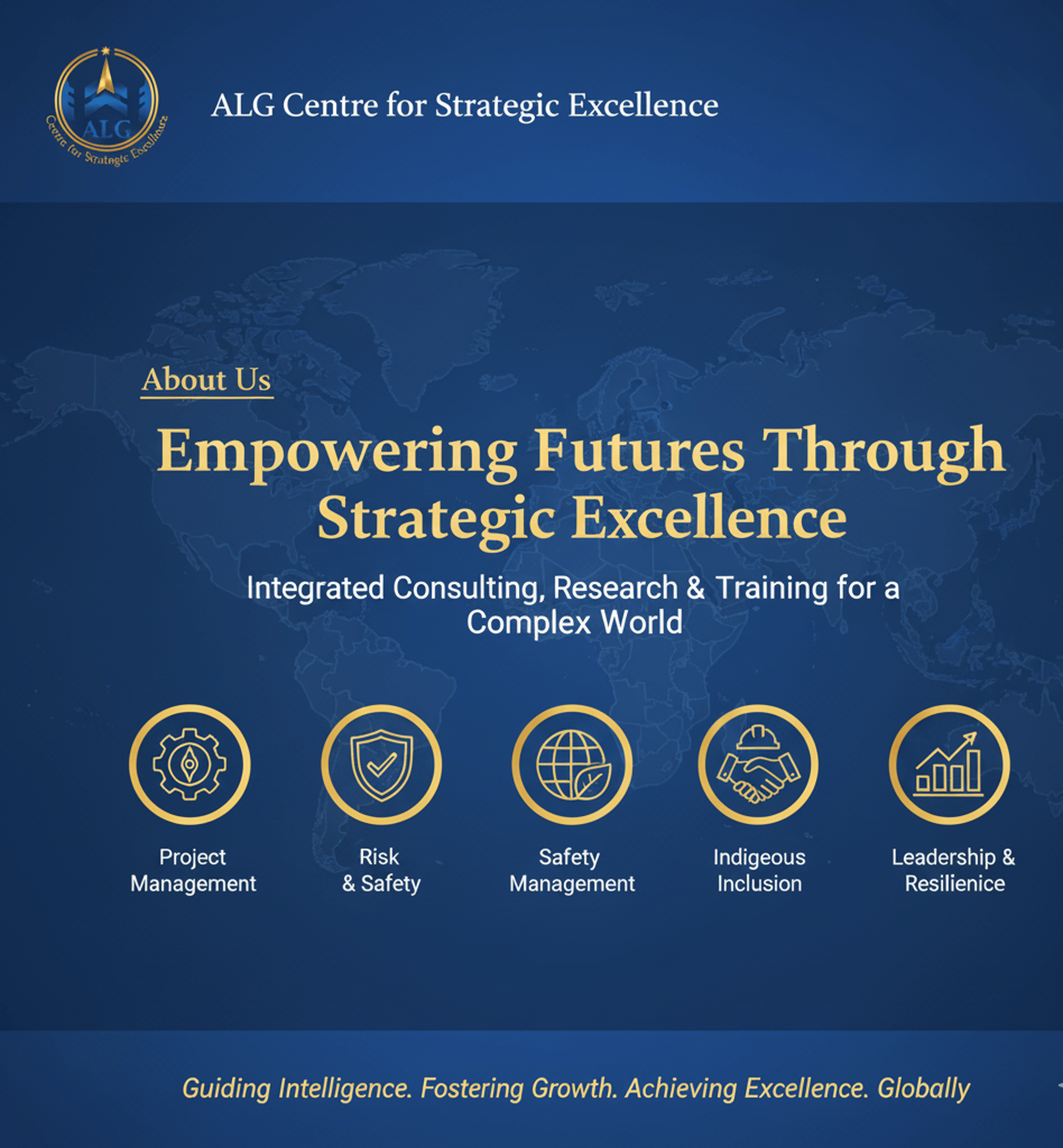 The ALG Centre for Strategic Excellence is a professional hub offering consulting, training, and research in Project Management, Risk, Safety, Sustainability, Resilience, Indigenous Inclusion, and Leadership, helping organizations achieve sustainable growth.